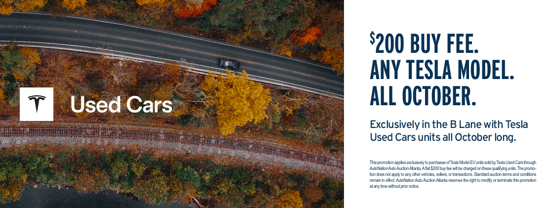 AutoNation Auto Auction Atlanta is a dealer-only auto auction in Ellenwood near Atlanta. We are your premiere source of vehicles for wholesale buyers featuring hundreds of EXCLUSIVE trades from AutoNation OEMs, fleet accounts, consignments, and franchise dealers every week! We also feature Tesla Remarketing trades each week.